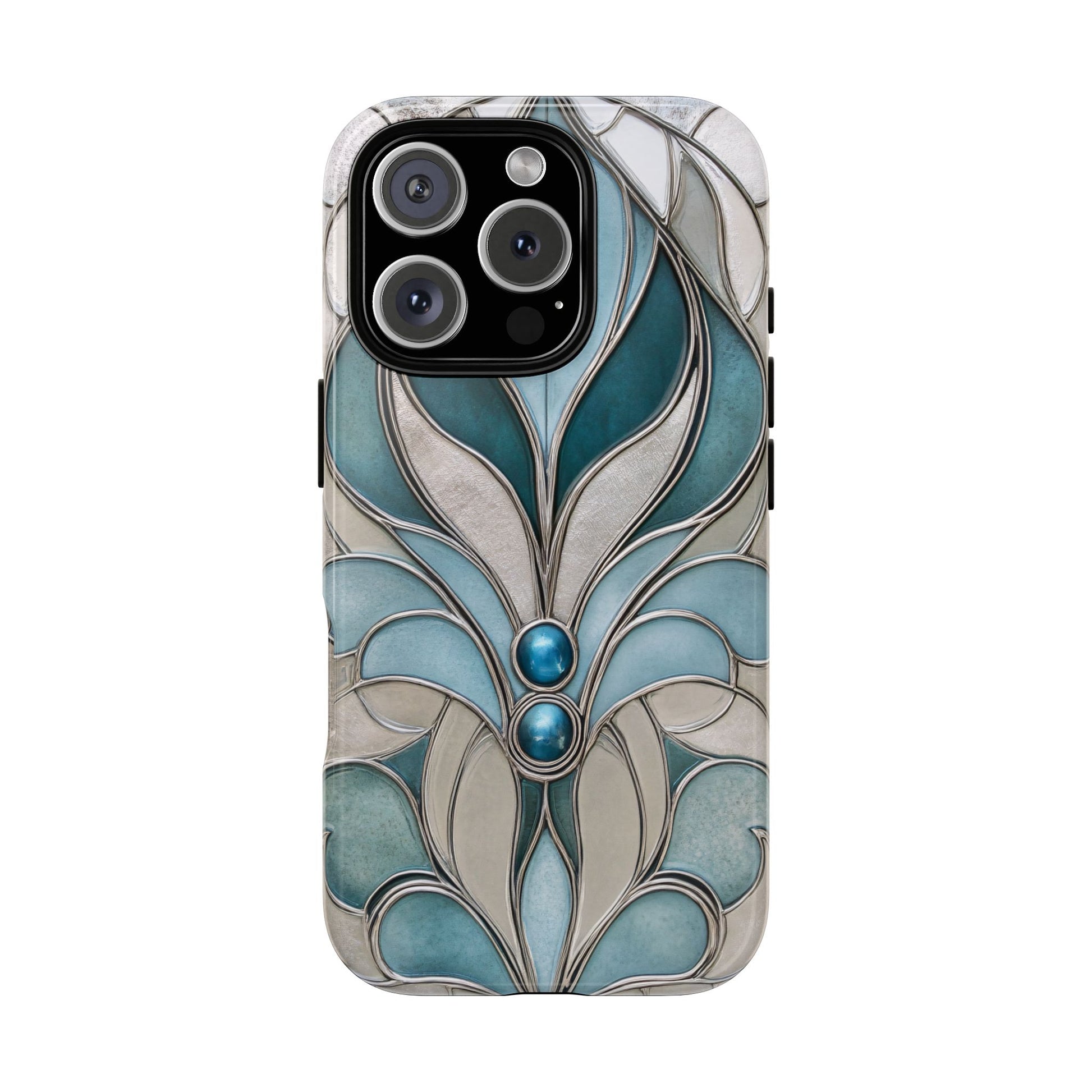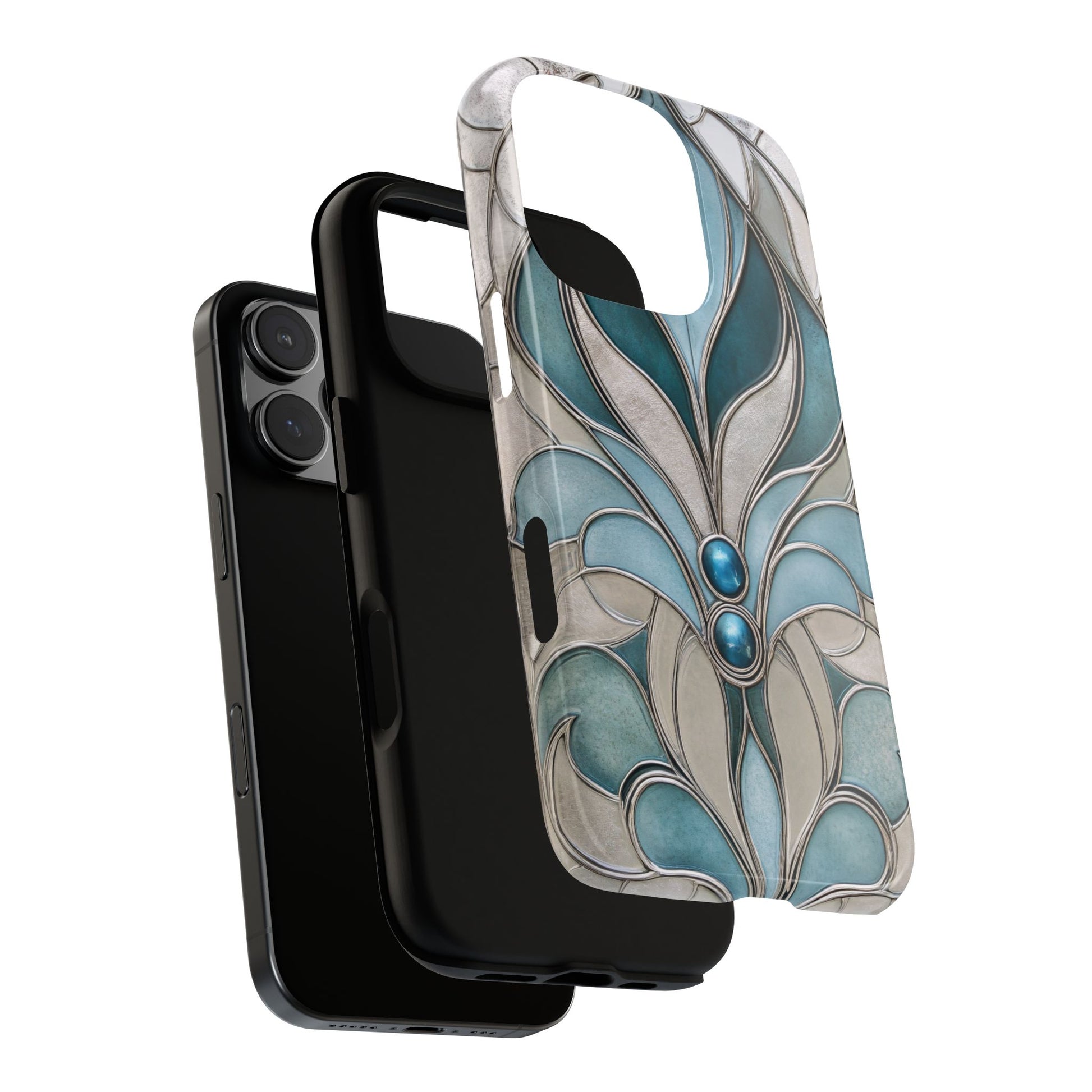 This aquamarine blue phone case in art deco style art nouveau gives off a luxurious and elegant vibe, perfect for those who appreciate vintage aesthetics. It is ideal for adults looking for a durable and impact-resistant case to protect their phone. This phone case is relevant for special occasions like birthdays, anniversaries, or as a thoughtful gift for a loved one.