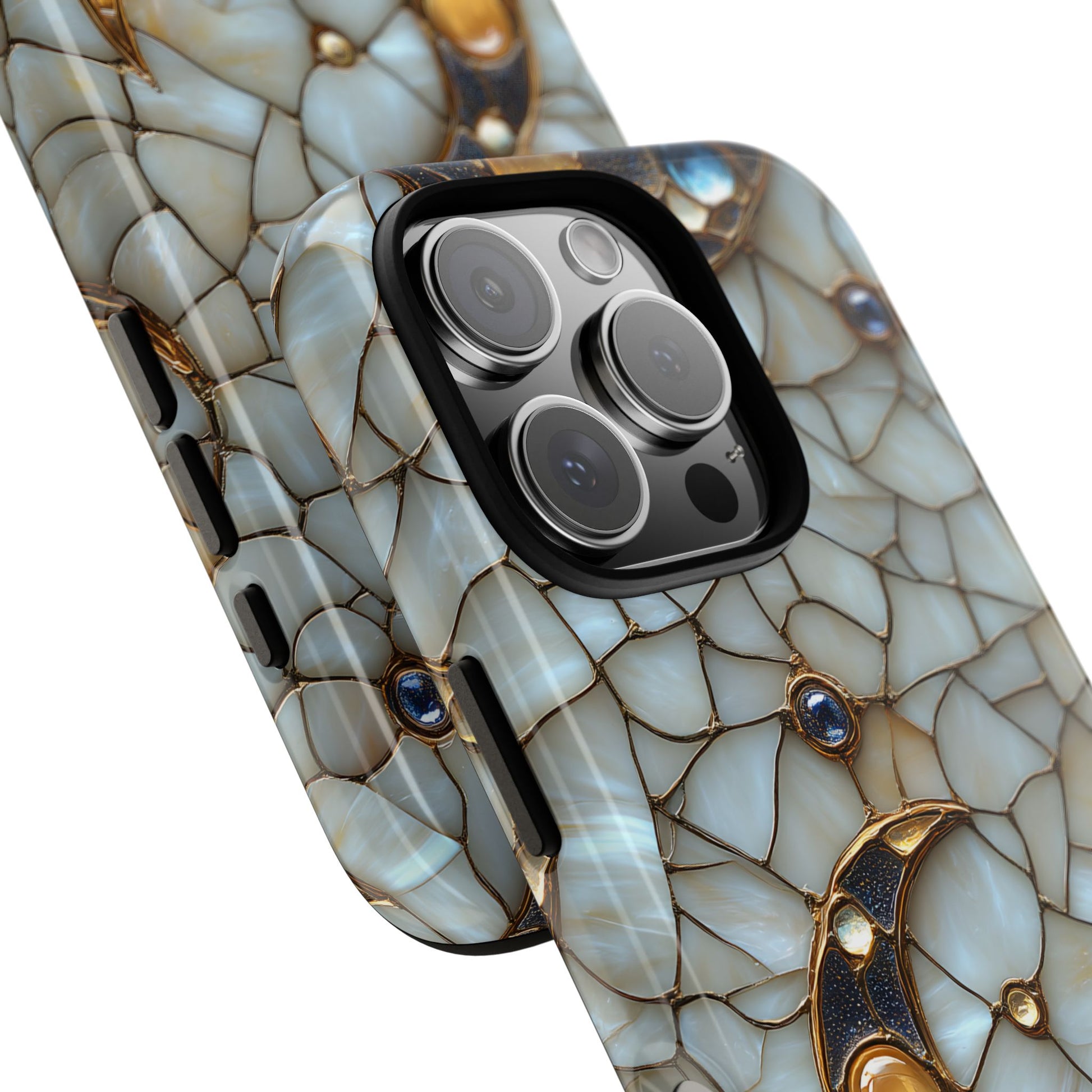 Celestial Phone Case – White Stained Glass & Gold Moon Design