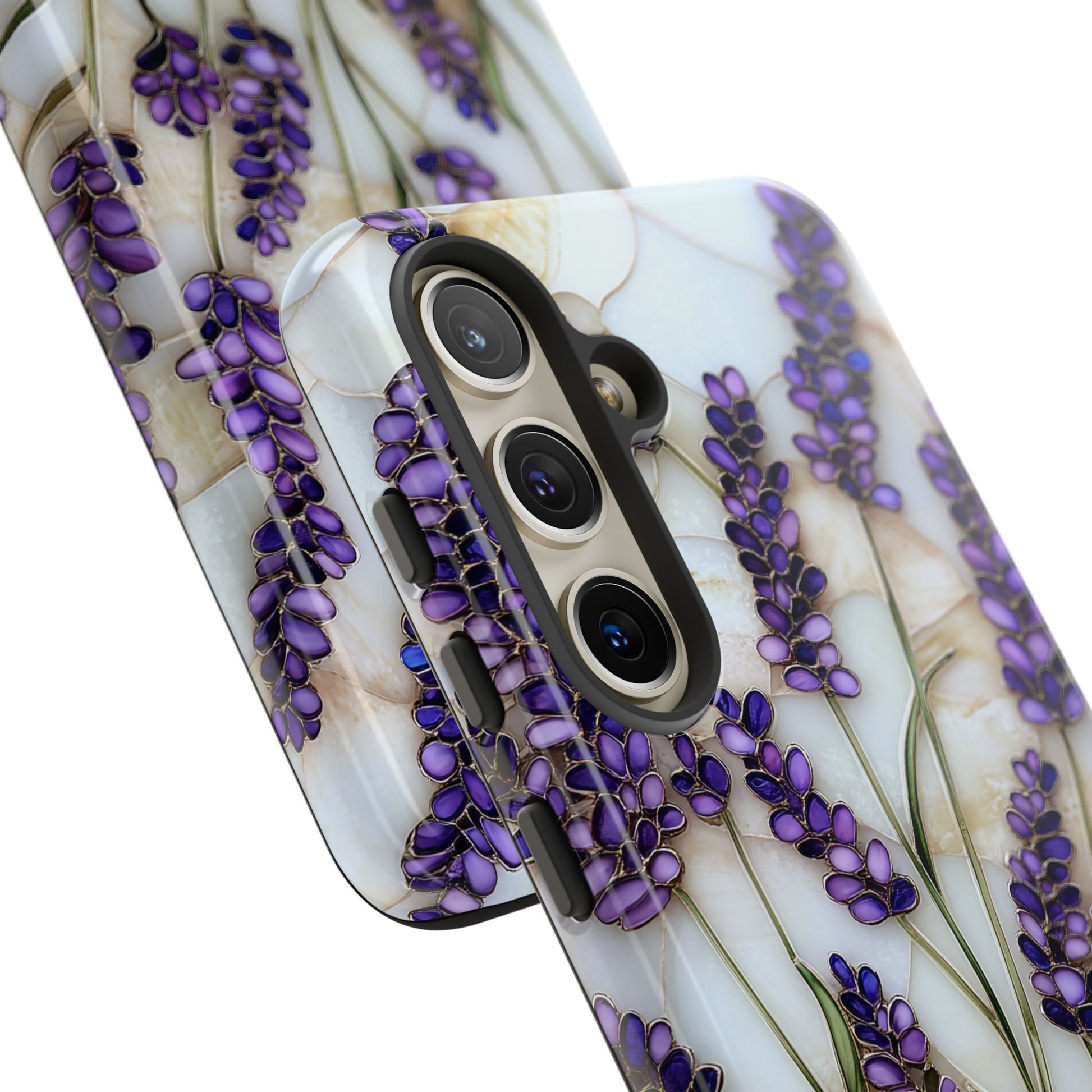 ✨ Art Meets Protection: This tough case blends delicate lavender blossoms with the timeless elegance of stained glass, turning your phone into a piece of art.
