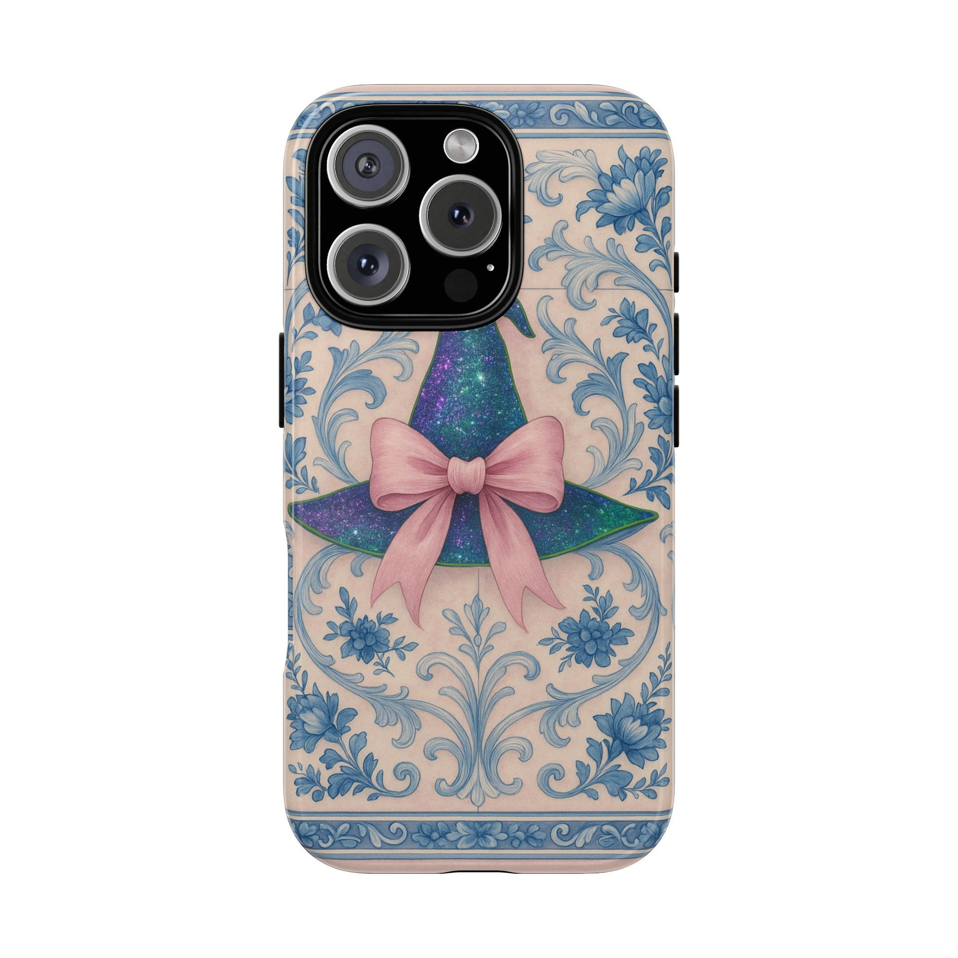 Witch Hat with Pink Bow Phone Case - Azulejo Tile Coquette Design