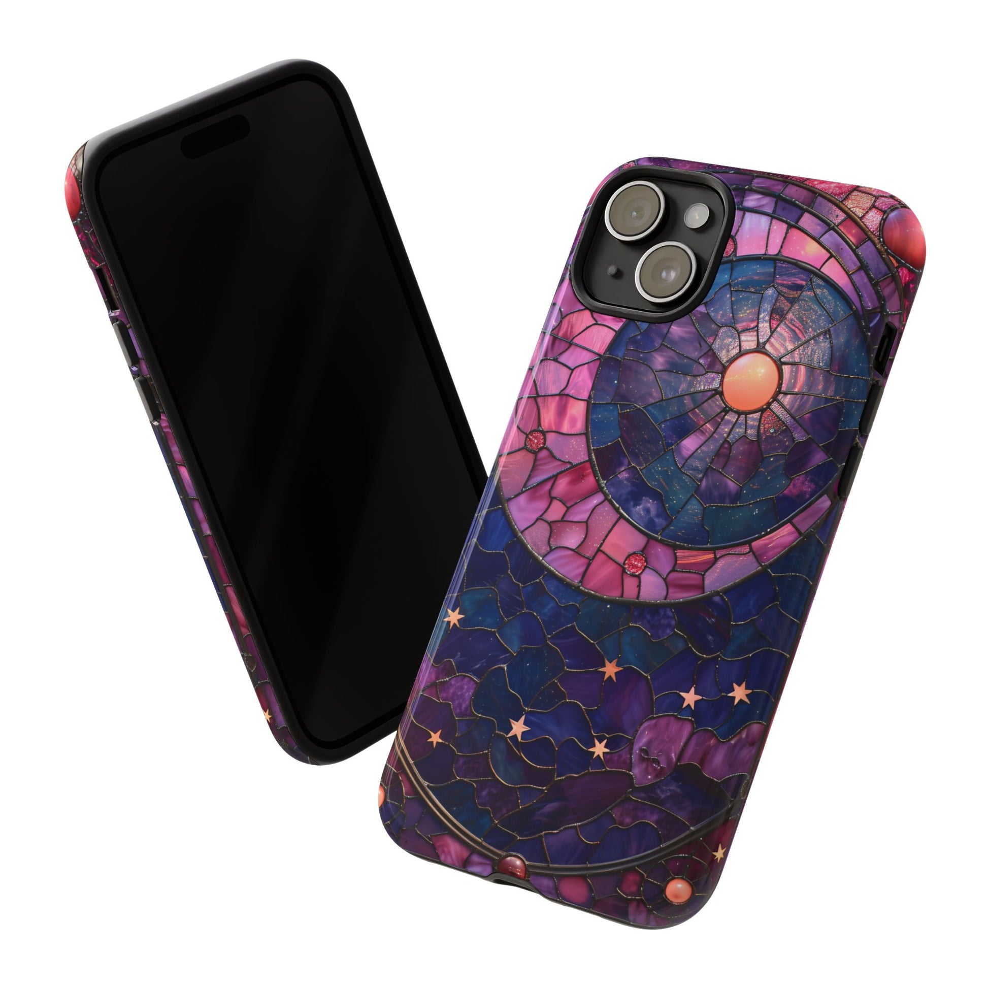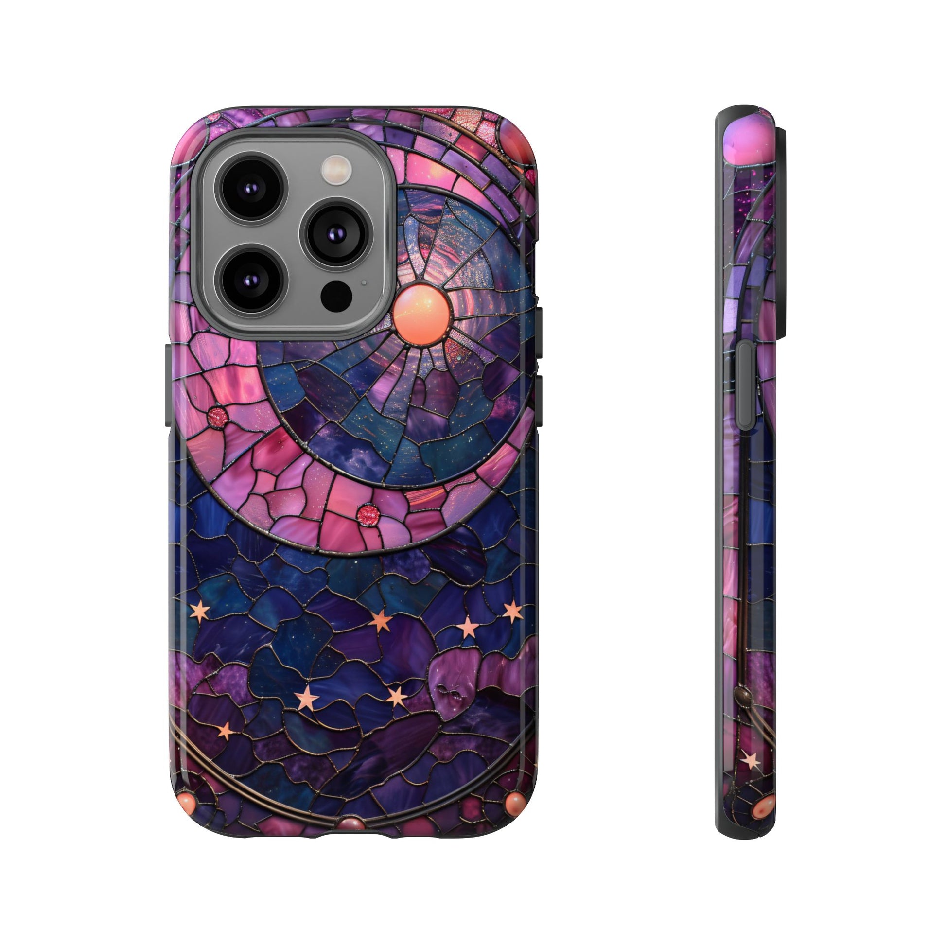 Pink Moon Tough Phone Cases in Stained Glass Design