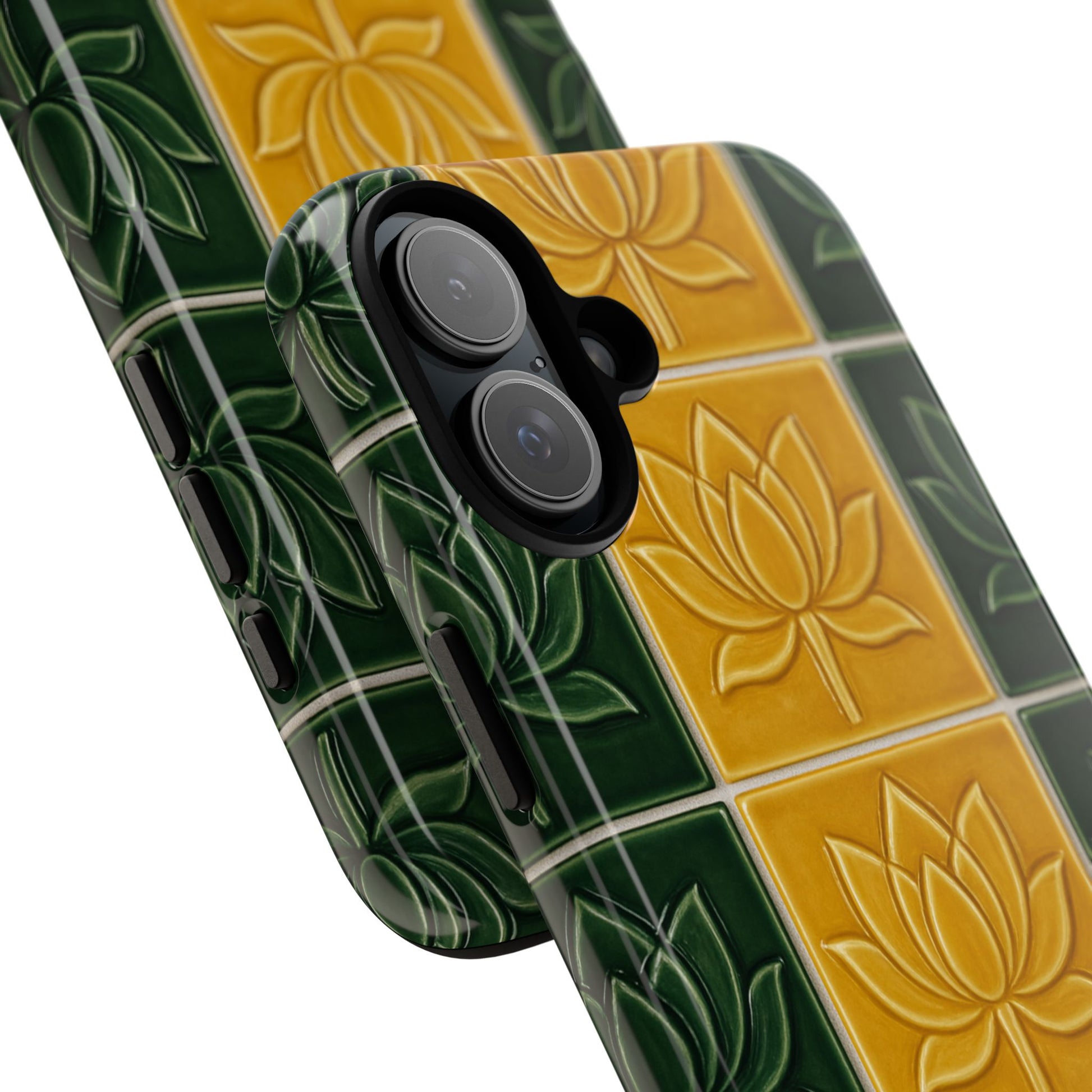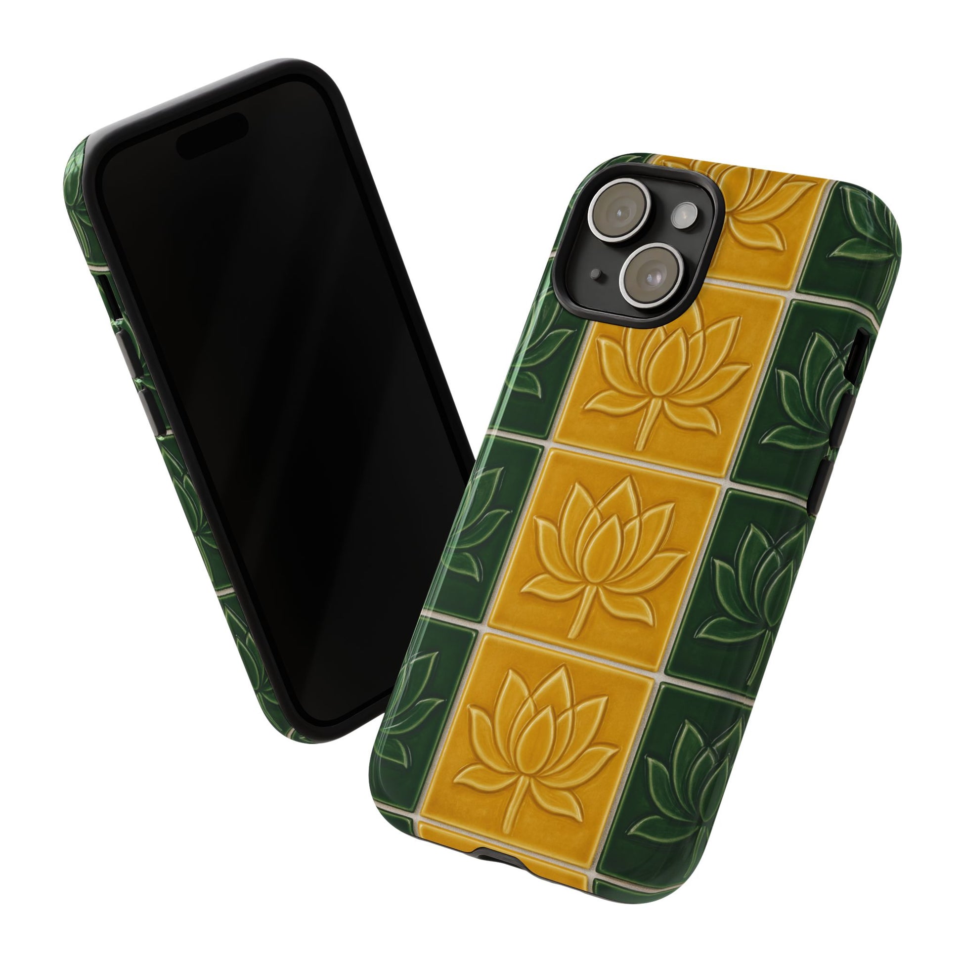 Tough Phone Cases - Mustard Yellow & Green Ceramic Tile From Caldas Da Rhaina, Portugal